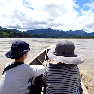 Le bus passe d’abord quelques rivières sur un bac en bois, trainé dans le courant par une petite barque à moteur.