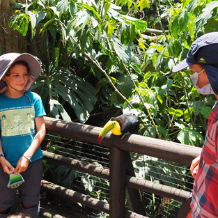 Peu après, nous sommes allés boire une boisson d’avoine chaude délicieuse mais peu appropriée au soleil et à la chaleur. Le soir, Fabian est venu avec son ordinateur pour nous montrer des photos de toucans et autres beaux oiseaux vus notamment dans son jardin ou dans la région. Depuis ce moment, je suis tout le temps avec les jumelles et la tablette sur le haut du mirador de l'hotel. J’ai maintenant deux applications ( "Merlin" et "ebird") qui permettent d’entendre les oiseaux d’Amérique, de les voir en photo et de les appeler… super utile pour un observateur.