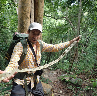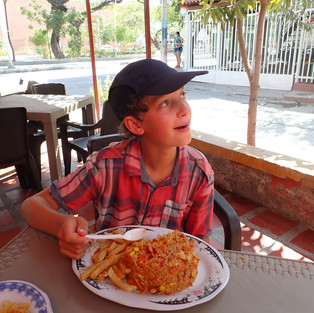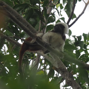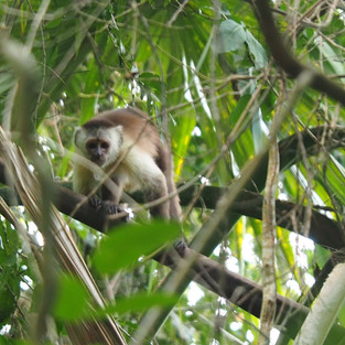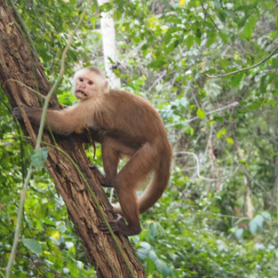 Nous avons visité un village indigène avec une jeune maman. Arrivés à Playa Brava où nous camperons, nous allons jusqu’à une cascade. Sur le chemin, nous attendaient deux gros rongeurs (capas de montagne). En pique-niquant nous regardions des oiseaux-pics nourrir leurs petits dans un cocotier mort. Le matin quelqu’un nous a montré une chauve-souris vampire, ils lui ont mis un poison pour contaminer les autres car elles s’attaquent aux chiens, aux chevaux, aux singes … Ils ont aussi déniché un boa constrictor dans leur toiture, que papa a pris dans ses mains. Nous sommes repartis et avons vu des singes capucins, des tamarins, des oiseaux manakin à queue lancée qui paradaient en sautant l’un après l’autre sur une branche, des carpinteros qui faisaient des gros trous dans les arbres, un martin pêcheur, un iguane, sans compter les innombrables lézards colorés. Nous ricochions de plage en plage pour arriver à une plage où se prélassaient de nombreux touristes. Nous nous sommes baignés dans l’eau fraîche et claire, en nous lançant quelques algues tandis que papa photographiait des poissons colorés tout prés de nous. Sur le retour, des capucins se battaient, sans se rendre compte de notre présence, juste au dessus de nous.