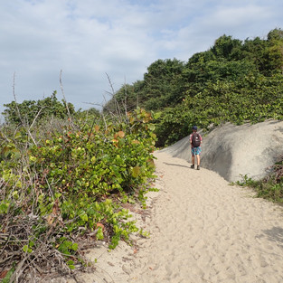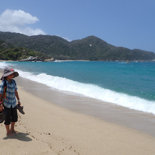 A Santa Marta, en attendant un bus pour le parc naturel deTayrona, quelqu’un nous prend en stop et nous parle de politique, de sa ferme où se rencontrent serpents, jaguars et guerillas. Arrivés à Calabazo, notre entrée pour Tayrona, nous rencontrons deux français qui nous accompagnent pendant environ une heure avant de partir d’un pas rapide.