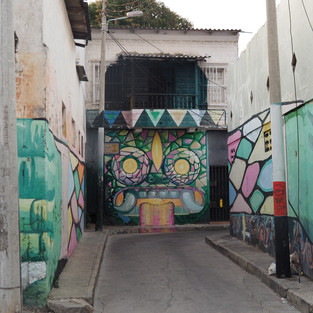 Visite de Getsemani : A côté de la ville fortifiée où se trouvent tous les beaux bâtiments, Getsemani est un quartier de peintres, de grandes maisons même si elles n’en ont pas l’air, et de graffitis sur les murs. Sur les anciennes murailles en briques de corail, le guide nous a raconté une histoire : en 1697 toute la flotte d’Angleterre est venue pour conquérir Carthagène. Les soldat gardant la ville n’avaient rien à faire depuis un siècle de tranquillité, mais ont gagné la bataille !! Tout ca grâce à leur général surnommé Mi-Homme (Medio Hombre) car il avait perdu un bras, un œil et une jambe pendant des combats précédents ! Pendant cette bataille, les moustiques ont joué un grand rôle, tuant la plupart des soldats anglais avec la fièvre jaune, et le reste, les espagnols et la stratégie de Francis Blake l’ont fait fuir.