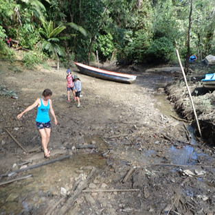 Sur les conseils de Katrina nous sommes allés sur le bord du Pacifique, dans un (très) petit village de maisons aux planches bringuebalantes appelé La Barra, à une heure de bateau rapide de Buenaventura (il n’y a pas de routes pour y accéder). Aprés l'océan indien en Tanzanie, et l'océan atlantique au Brésil, nous avons la chance de nous baigner pour la première fois dans l'océan pacifique. Les vagues sont assez grandes pour « surfer » (pour nous, surfer c’est se mettre sur le ventre et glisser sur une vague), enfin lorsqu'il ne pleut pas trop. Le poisson grillé de Dona Oralia est délicieux !!