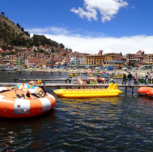 A Copacabana, notre objectif, une grande cathédrale nous attendait avec des gens baptisant leurs voitures avec de la bière !!!! Nous dormions dans un petit hôtel avec deux chatons pas plus lourds que des plumes. Nous nous sommes promenés sur la plage, et avons pris un bateau pour les iles flottantes, où j’étais très déçu : les tapis tressés des îles sont en fait des bouts de bois recouverts de paille😑. La truite, en revanche, était délicieuse. Elle fondait dans la bouche et faisait partir le gout de banane chimique de l’Inca Kola, un soda péruvien. Beurk ! Après, nous sommes repartis et, sur la plage, moi et Simon sommes partis dans un tube d’air, sur le lac. Nous hurlions à tue-tête près des vacanciers en leur faisant des signes de mains tout en roulant comme des hamsters. Ensuite, nous sommes allés en haut d’une colline, appelée calvaire, avec une vue imprenable sur la ville. Des cholitas y vendent des immeubles en plastique, des voitures, des maisons en sucre et de faux billets pour prier la Pachamama (Terre Mère).