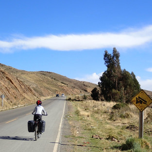 Jeudi, nous sommes partis pour aller à Copacabana en 3 étapes ! La première étape nous avons fait 44 km sur du goudron avec du vent de face, entre des voitures et moutons. Nous avons dormi dans un hôtel près d’une jolie place surélevée.