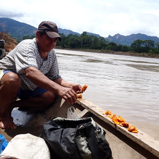 Un fruit orange de palmier ( shonta) peut servir de nourriture en mode survie. C’est aussi l’appat pour pecher des gros poissons dans le fort courant du fleuve Beni.
