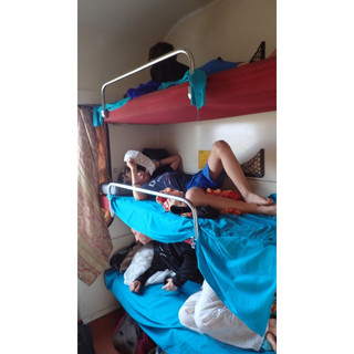 Le train : on a prit le train presque 2 jours, on était en 2ème classe où il y a 6 couchettes par cabine et pendant la nuit, on est bercé par les secousses du train.