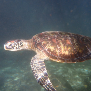 Ce matin, mes parents nous annoncent que nous allons dans un centre de conservation des tortues vertes (voir photo 🏖) . Moi et Martin avons sauté de joie et ils nous ont dit qu’on pouvait peut-être nager avec elles et leur donner à manger . Donc nous avons tout de suite enfilé nos maillots et pris la route pour arriver au centre de conservation des tortues vertes. Là bas, le monsieur a confirmé qu' on pouvait nager avec elles . Alors nous avons enlevé nos habits et … câlins, pas moyen de plonger, les tortues nous ont déjà écrasés. On devait les pousser pour pouvoir se lever . Et là , papa se fait mordre par une tortue au mollet !!!!🐢🐢 Quand on s’est mis à l’eau , on ne pouvait pas bouger. Nous étions entourés par les tortues . On devait les pousser pour pouvoir remonter à la surface . Le monsieur nous appelle pour leur donner à manger ( ce qu’elles attendaient depuis tellement longtemps) . Il faut 100 kg d’ algues par jour pour 32 tortues vertes , dire que les soigneurs vont les chercher à la main !!!! Ils sont forts ces gars là. Il y avait aussi des poissons . Quand on leur donnait des petits poissons , ils les mangeaient très vite . Quand on donnait des algues aux tortues, nous les voyions s’approcher doucement et attraper les algues dans leur bec. A un moment, on s’est posé sur une plateforme avec un plein seau d’algues. Les tortues s’avançaient, en nous regardant d’un air soupçonneux , et entouraient la plateforme de leurs grosses carapaces. On ne pouvait pas partir de la plateforme. On a dû leur donner tout le seau et leur faire comprendre qu’il n’y avait plus rien. Ce n’était pas gagné. On a dû les pousser pour revenir au bord du lagon. Alors qu’on s’apprêtait à partir, Martin s’est fait manger son maillot de bain car une tortue était particulièrement gourmande et a goûté à son arrière train.