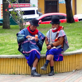 Tout sourire (plus que la moyenne, pourtant déjà élevée dans le pays), ils ont des faciès plus andins, cheveux ébène comme une nuit sans lune, peau bien cuivrée par le soleil d’altitude. Nous flânons dans le village, nous asseyons sur la place principale à admirer leurs tenues, les regardons se saluer joyeusement, ou encore partager un peu d’eau de vie (Aguardiente : « eau ardente »). Les dames marchent un fuseau à la main, filant la laine.