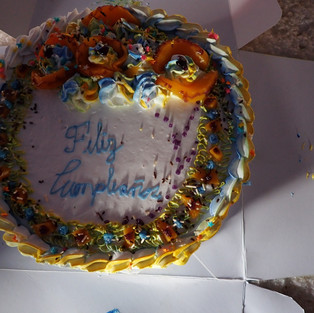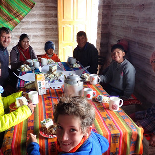 Nous partageons un gros gâteau d’anniversaire avec Eric, Sandra et leurs enfants avant de reprendre la route en vélo vers la petite ville d’Uyuni.