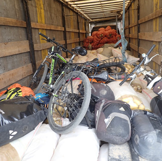 Puis nous nous lançons dans une traversée d’ouest en est du pays, direction Kazarman. Mais après une heure de vélo, les yeux rivés sur les montagnes que nous aurons à franchir, deux policiers sentant notre ambition la coupent net. La route est fermée : Gorode zakrit ! Le col à 3000m est encore encombré de neige, nous sommes donc contraints de faire chemin inverse vers le nord. Pas de grande boucle donc. Nous tendons le pouce et nous voilà confortablement à bord de la cabine de camionneurs, nos vélos et bagages disposés dans la grande remorque avec des cargaisons de matériaux de construction ou de Kartochka (patates), voyant rembobiner en quelques heures le film de nos journées d’efforts sur la même route.