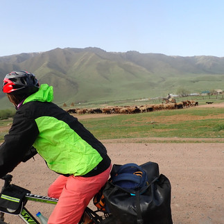Dans ces villages éparses, impossible de nous soustraire à la curiosité publique. Nous croisons des écoliers costumés qui nous saluent, des hommes d’âge avancé souriants, toujours surmontés de leur Kalpak (chapeau de feutre traditionnel), qui nous lancent un Salaam chaleureux. Le cheval devant l’échoppe attend son maitre, sagement résigné, d’autres vaquent avec les ânes en liberté. Des petites Lada garnies de leur famille nombreuse klaxonnent de joie. Plus loin, voilà un jeune cowboy, menant son troupeau du haut de son cheval, absorbé par son smartphone, tandis que les moutons hésitent entre nous barrer le passage par la gauche ou par la droite...