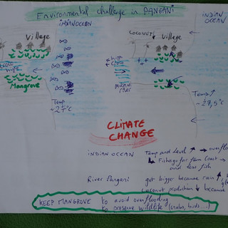 La mangrove assure un tampon afin de préserver le village de la montée des eaux. La loi et les services municipaux s’assurent que les villageois n’y prélèvent pas de palétuviers pour le bois de feu.