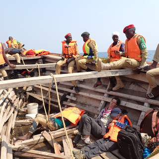 Le bateau nous ramène ensuite sous un soleil qui assomme la moitié de l’équipage, et maintient l’autre suffisamment éveillée pour scruter la végétation dene à l’affut des animaux du parc de Gombe ( macaques, colobes, à défaut de chimpanzés).