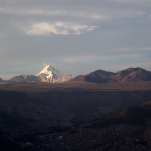 Des remontées mécaniques survolent cette capitale, la plus haute du monde avec ses 4000m, comme une station de ski. Nous nous acquittons ainsi de trois bolivianos (30cE) chacun pour un long tour de manège. Le paysage est à couper le souffle. Nous restons bouche bée devant cette immense cité surréaliste, agrippée aux nuages, nichée dans une vallée aride, surplombée au nord comme au sud par les sommets andins dépassant 6000m ; A l’ouest s’étendent les grands espaces de l’Altiplano, de quoi prendre le pouls de nos prochaines aventures. Chaos urbain bariolé, bruyant et mouvementé. Maisons de brique et de broc rongeant les abrupts flancs montagneux. Bâtisses de style colonial perdues au milieu de buildings disgracieux.