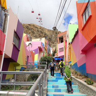 Nous nous joignons un matin à des étudiants pour la visite du quartier Chua Uma , haut en couleur celui ci. Fresques colorées offertes par la ville à un de ces hauts quartiers pauvres.