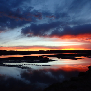Le soir, le vent se lève et le soleil enflamme le ciel, les nuages, les sommets, les cours d’eau. Difficile de décrire les images que cette nature imprime en nous, dans ces moments spéciaux où la lumière intense teinte le paysage.