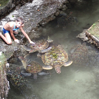 A Nungwi, 2 centres de conservation des tortues marines accueillent les visiteurs pour un droit d'entrée modique. L'occasion d'observer, nourrir et même nager avec ces apaisantes créatures est unique. Nous restons une matinée entière seuls avec une trentaine de ces rescapées de la mer, prises involontairement dans des filets de pêcheurs, soignées dans ce centre, puis relâchées chaque 20 février en vue de pouvoir se reproduire puis elle-même donner chance de vie à env 500 oeufs sur leur propre lieu de naissance. L'espèce est d'autant plus fragile que durant leur vie, qui peut durer 120 ans, elle ne pondent qu'à 2 reprises. Le réchauffement de l'océan indien, déjà plus d'un degré, induit une fragilisation des lieux de nidification, ainsi qu'un déséquilibre de genre en faveur des femelles d’autant plus nombreuses que les œufs sont chauds.
